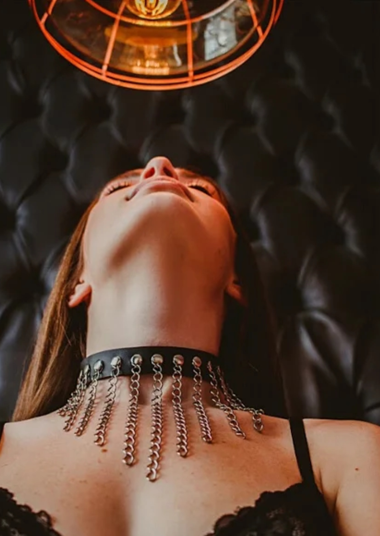 Se entregue ao prazer dos sentidos e viva fantasias inesquecíveis com a Coleira com Guia - Lavínia - DOM & DOMME. Acessório perfeito para quem deseja explorar os limites do desejo com elegância, conforto e segurança.