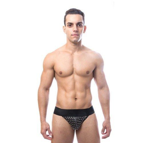 Esta jockstrap não é apenas uma peça íntima - é uma declaração de estilo. As taxinhas em metal são pregadas artesanalmente, adicionando um toque de charme e personalidade à peça. A abertura atrás proporciona um toque adicional de sensualidade, tornando-a a escolha perfeita para aqueles que querem se sentir sexy e confiantes.